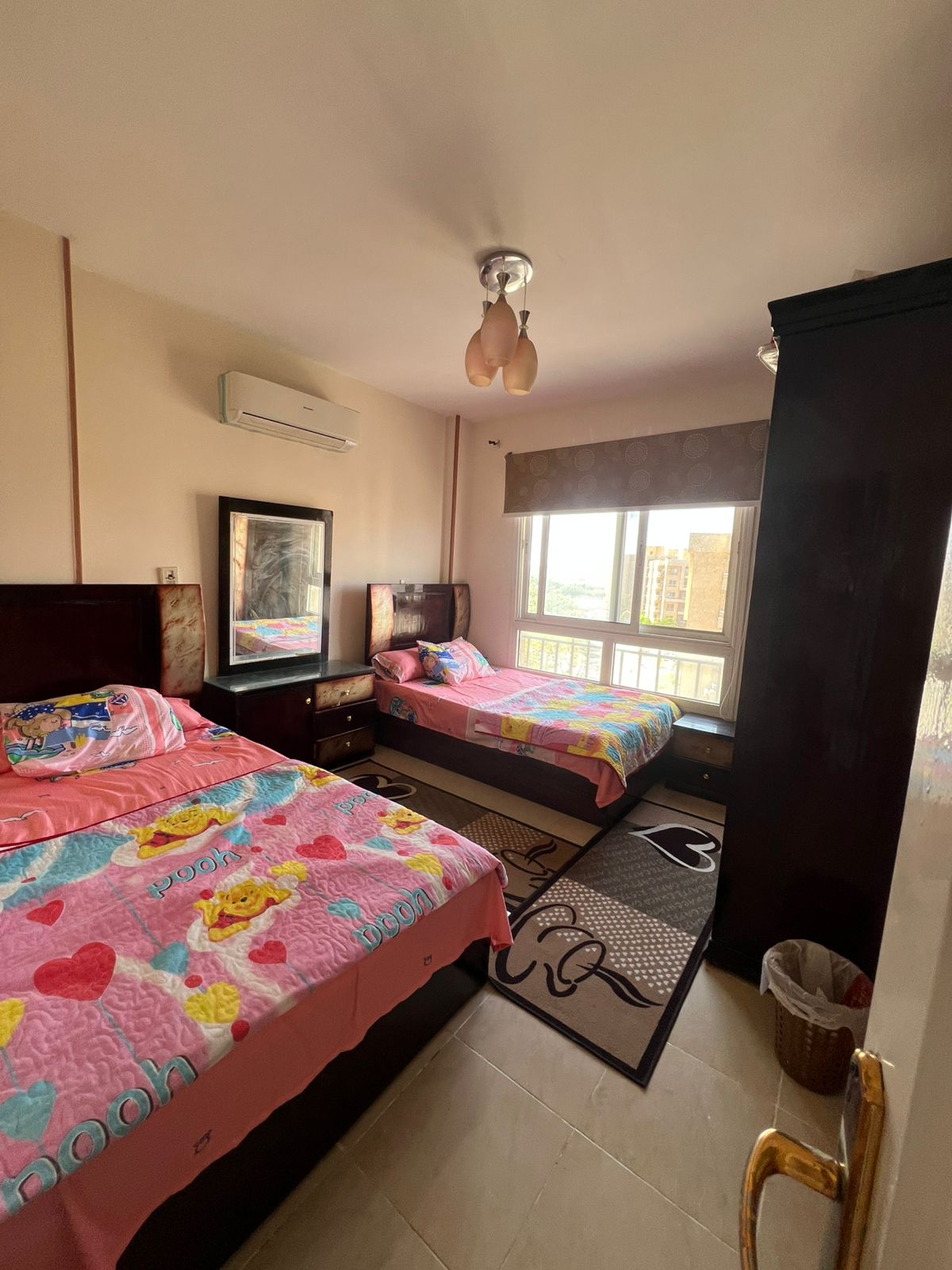 شقة في مدينتي بالمرحلة الحادية عشر النموذج ( 70 ) المساحة 96 متر2 قبلي تطل على شارع و حديقة صغيرة تشمل 3 نوم 1 حمام 2 بلكونة بالطابق الخامس تشطيب خاص للإيجار مفروش 25,000 جنيه و مكيفه