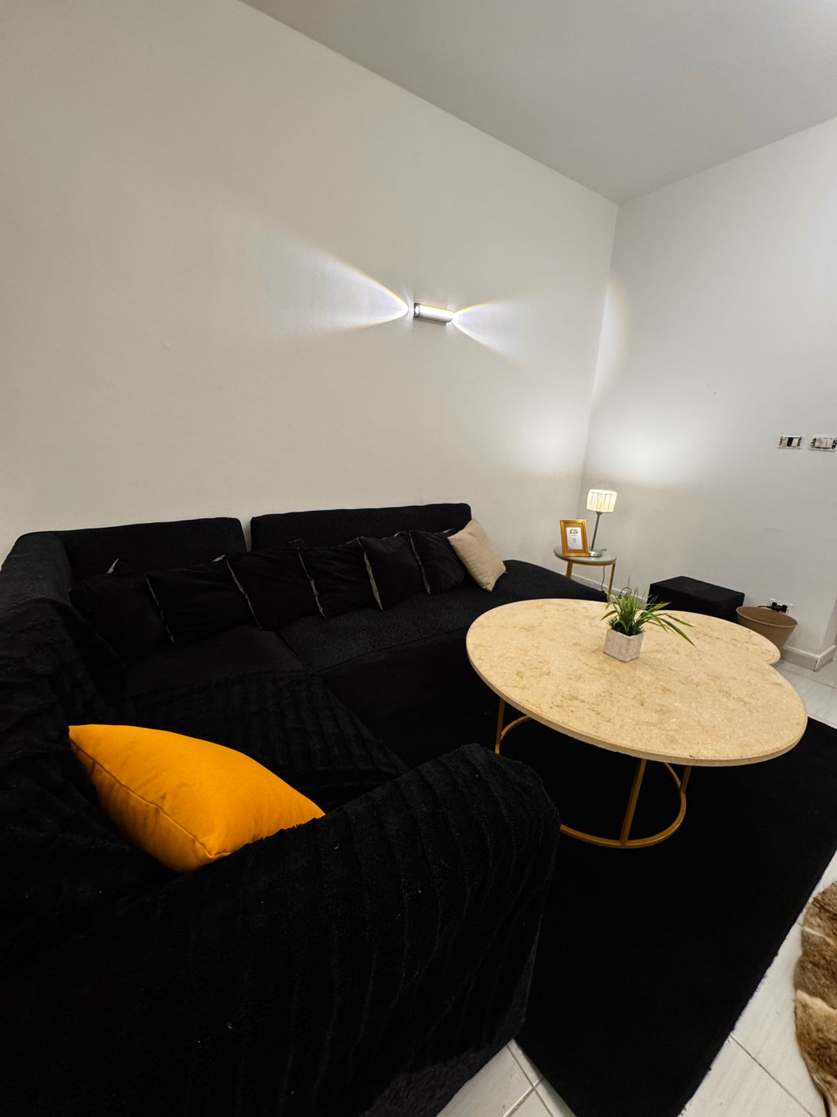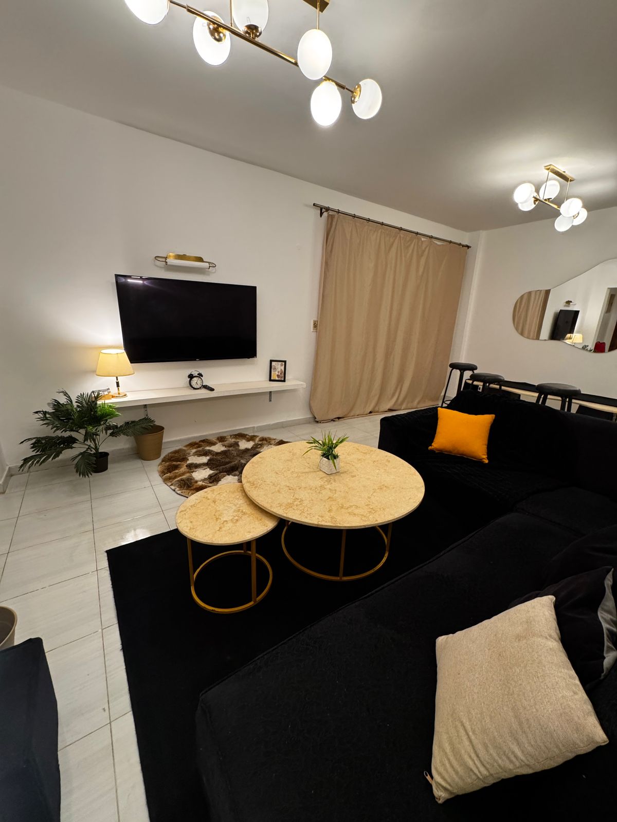 شقة في مدينتي بالمرحلة الثانية النموذج ( 100 ) المساحة 107 متر2 بحري و غربي تطل على باركنج تشمل 2 نوم 1 حمام 1 بلكونة بالطابق الثاني تشطيب الشركة للإيجار مفروش 25,000 جنيه و WiFi إنترنت فايبر \\n مكيفه air conditioner