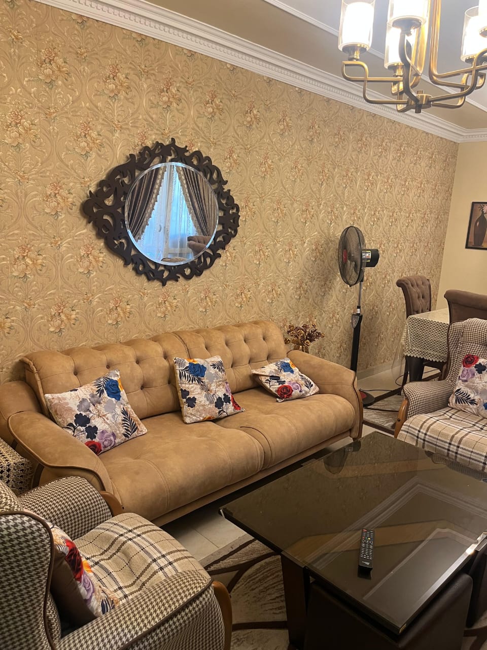 شقة في مدينتي بالمرحلة الثالثة النموذج ( 100 ) المساحة 105 متر2 بحري و غربي تطل على باركنج تشمل 2 نوم 1 حمام 2 بلكونة بالطابق الأول تشطيب الشركة للإيجار مفروش 25,000 جنيه