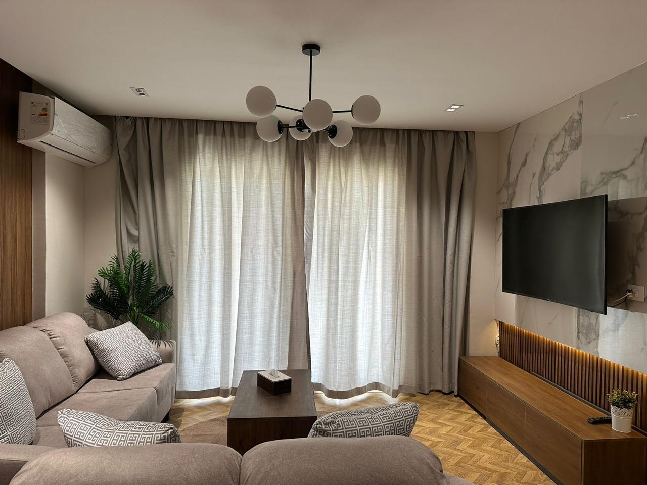 شقة في مدينتي بالمرحلة الحادية عشر النموذج ( 05 ) المساحة 108 متر2 بحري و شرقي تطل على حديقة تشمل 3 نوم 2 حمام 2 بلكونة بالطابق الأرضي تشمل حديقة خاصة 45 متر2 تشطيب خاص للإيجار مفروش 25,000 جنيه و اول سكن فرش حديث وجديد لم يستعمل 3 تكييف غرفتين ورسيبشن ما عدا غرفة واحدة