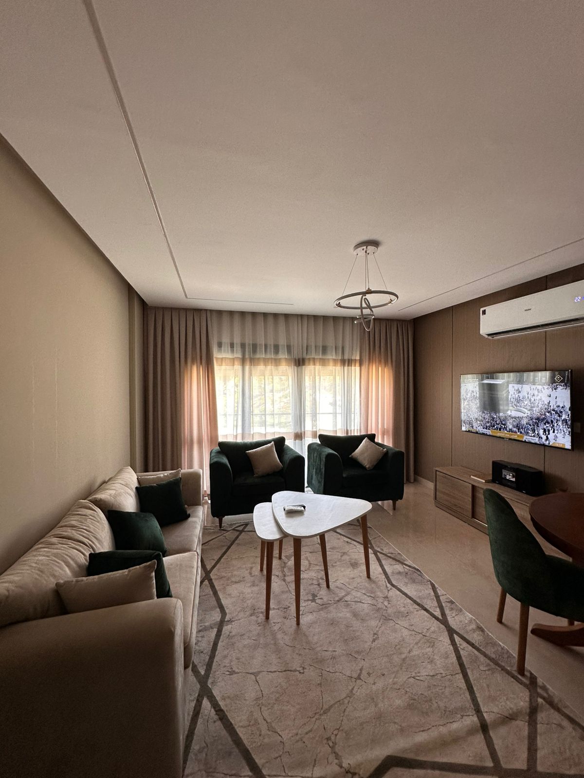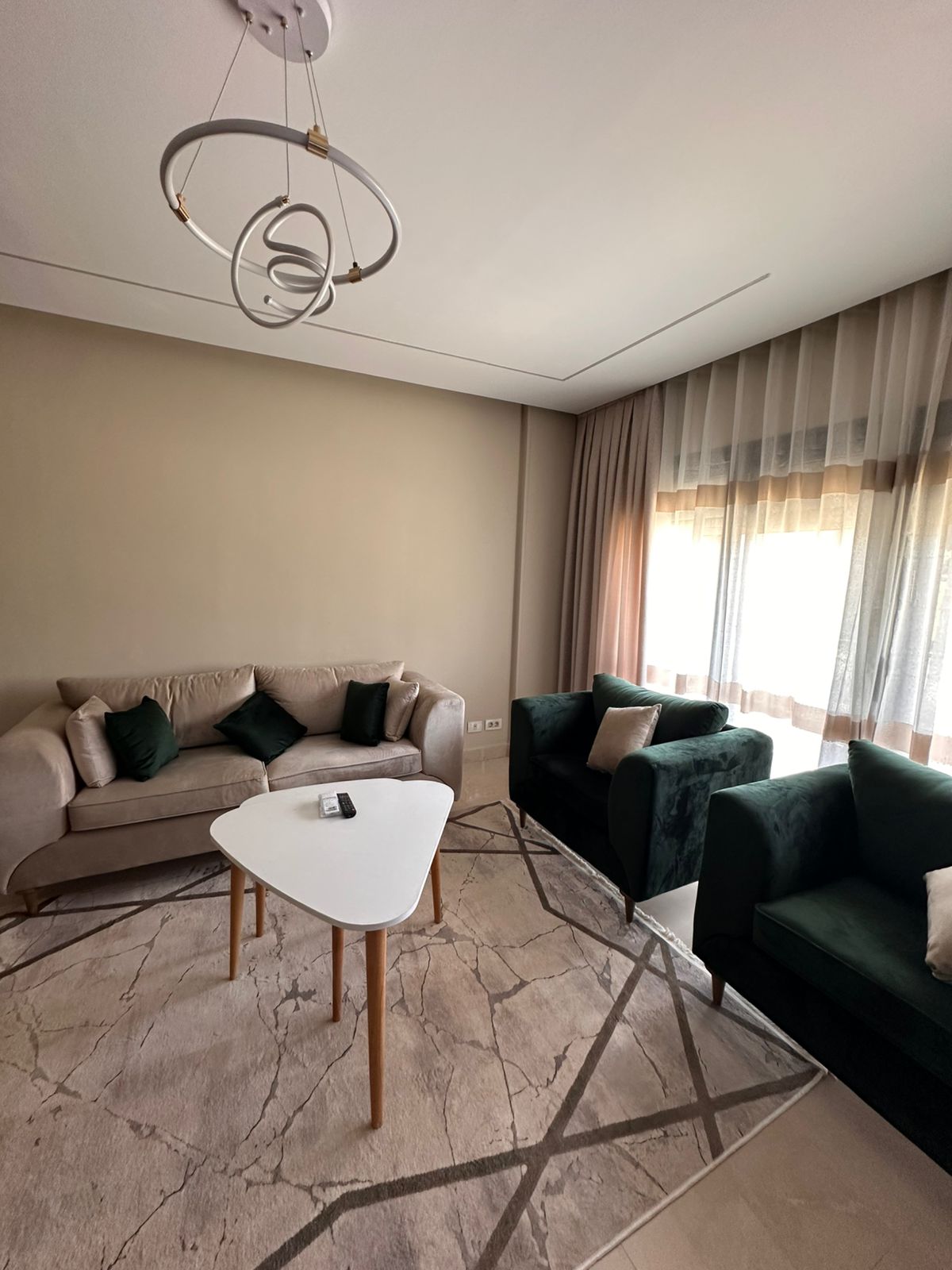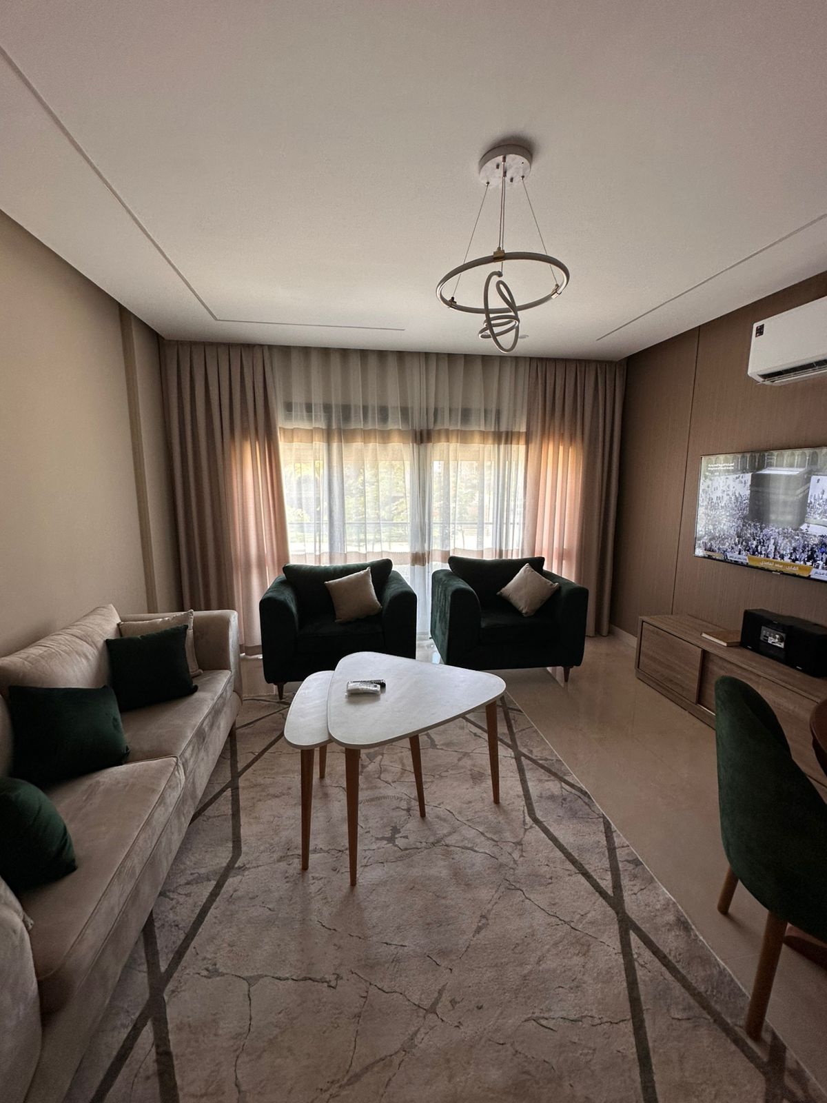 شقة في مدينتي بالمرحلة الخامسة عشر النموذج ( A1 ) المساحة 100 متر2 تطل على تشمل 2 نوم 2 حمام 1 بلكونة بالطابق الأول تشطيب هاي لوكس للإيجار مفروش 50,000 جنيه