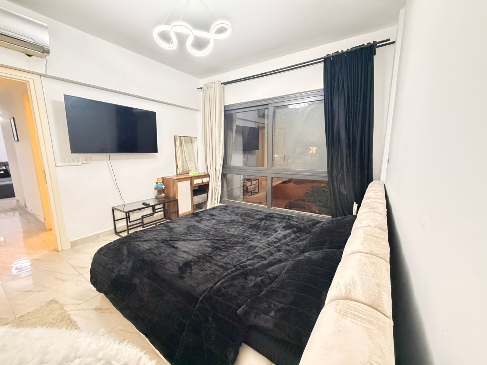 شقة في مدينتي بالمرحلة الثالثة النموذج ( 100 ) المساحة 106 متر2 بحري و غربي تطل على باركنج تشمل 2 نوم 1 حمام 1 بلكونة بالطابق الخامس تشطيب الشركة للإيجار مفروش 13,000 جنيه و .