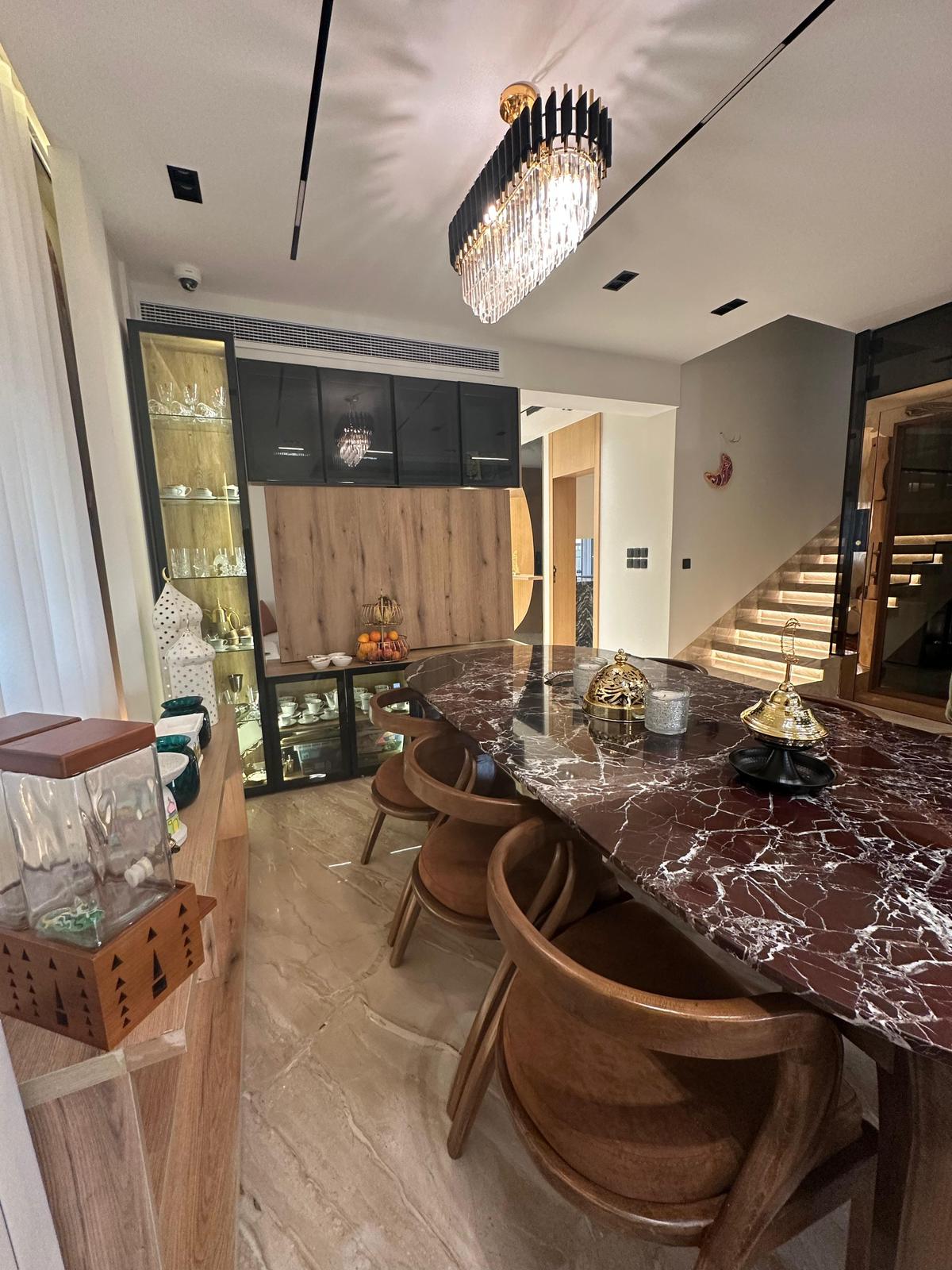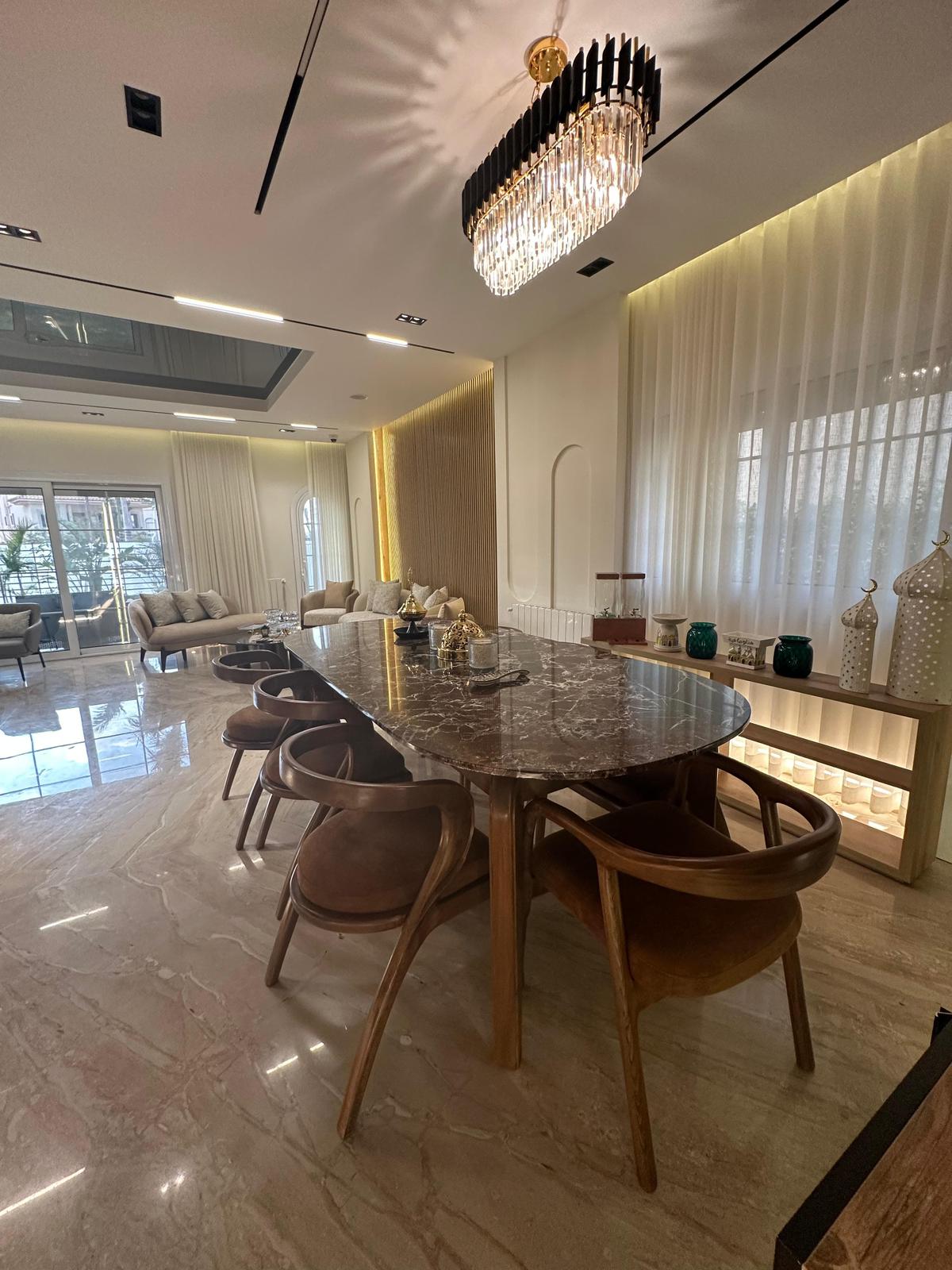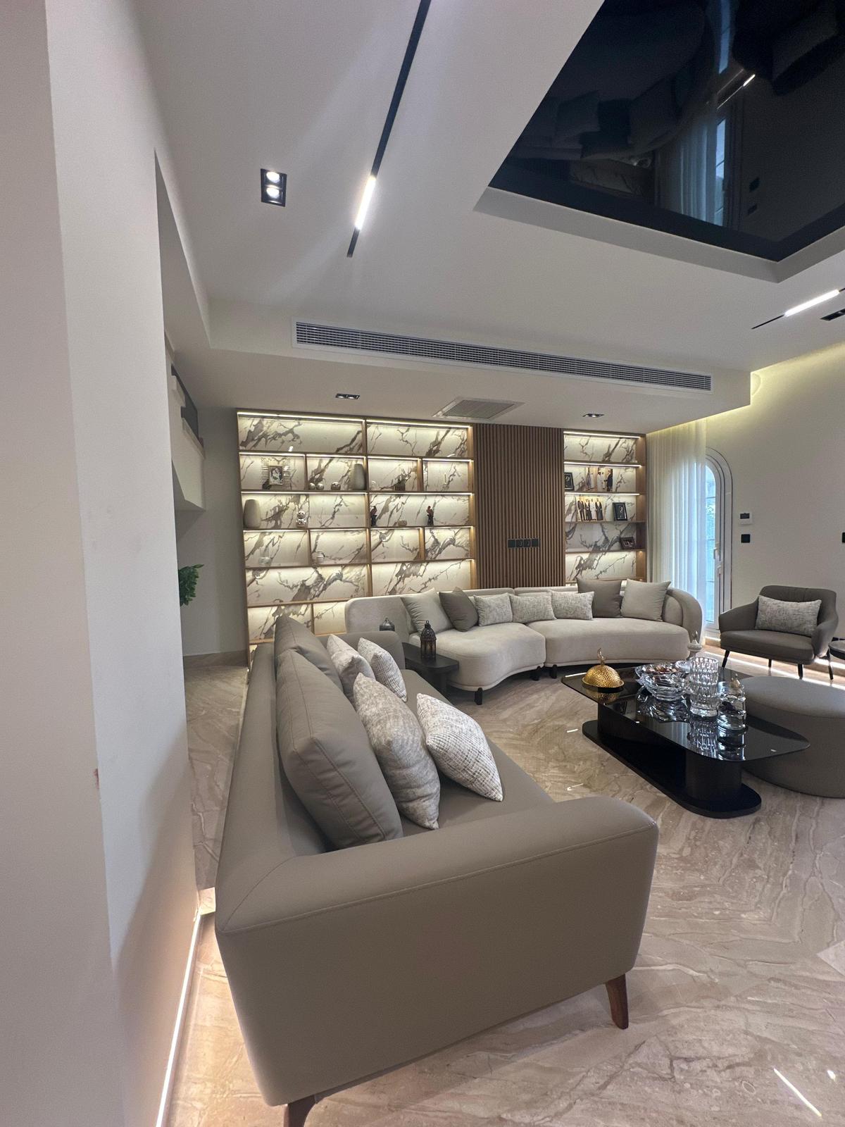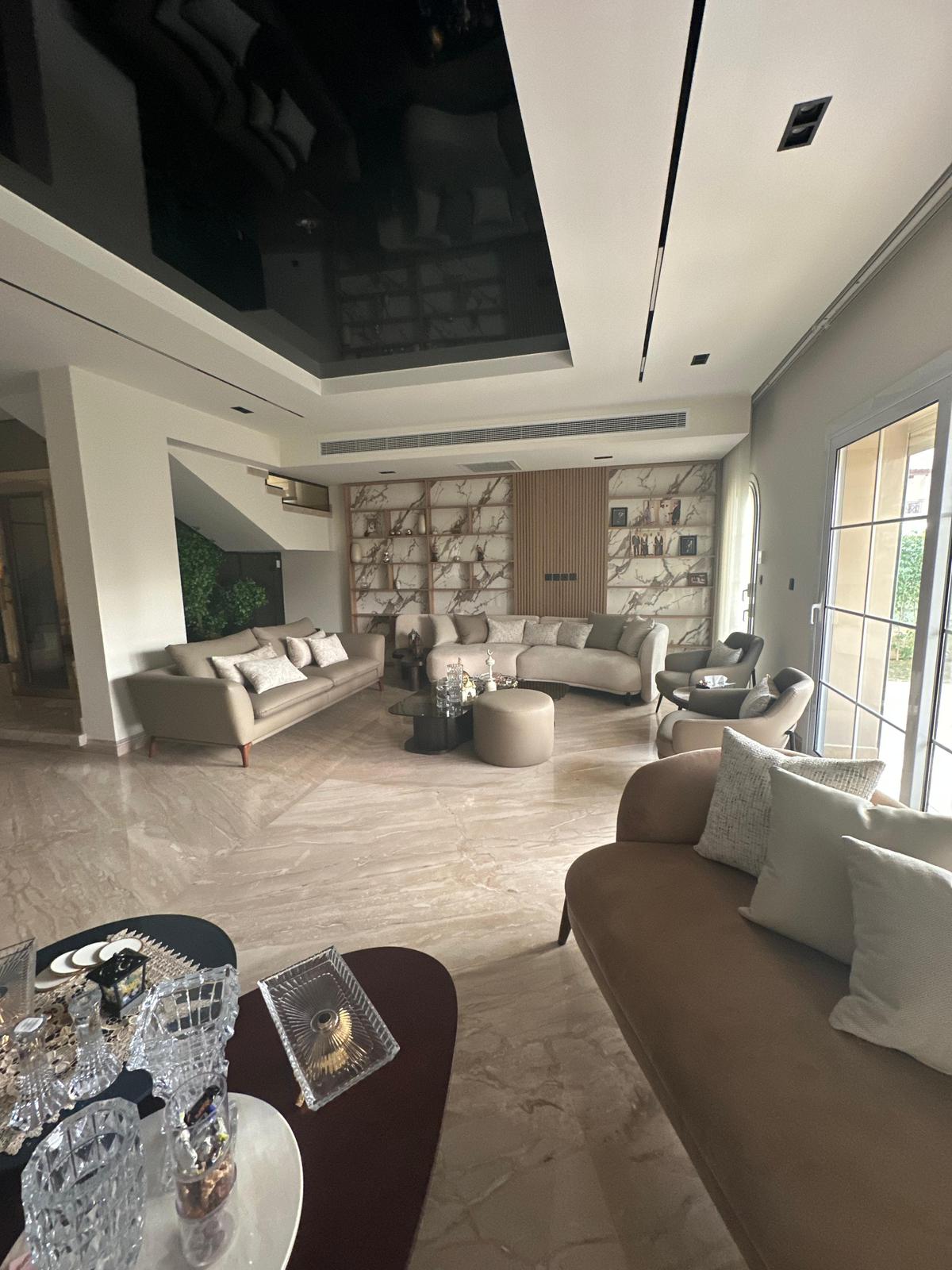 اول سكن تشطيب فندقي فاخر البيع شامل الفرش والاجهزه والوديعه وجميع المصاريف الفيلا تشمل 5 غرف نوم منهم 3 ماستر غرفة سائق وغرفة العاب او جيم شاتر كهرباء تكييفات كونسيلد تدفئه مركزيه اسانسير غلايه مركزيه عدد 2 موقف سياره مع تنده نظام كاميرات ساوند سيستم انتركوم مع نظام التواصل الداخلي بين الادوار ( متبقى اقساط حوالي12 مليون على 5 سنوات )# تواصل مع المبيعات