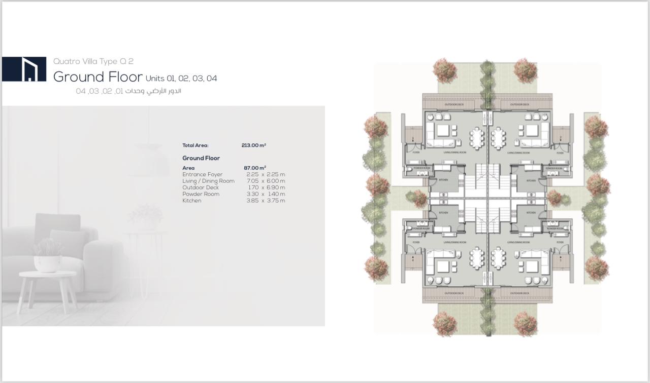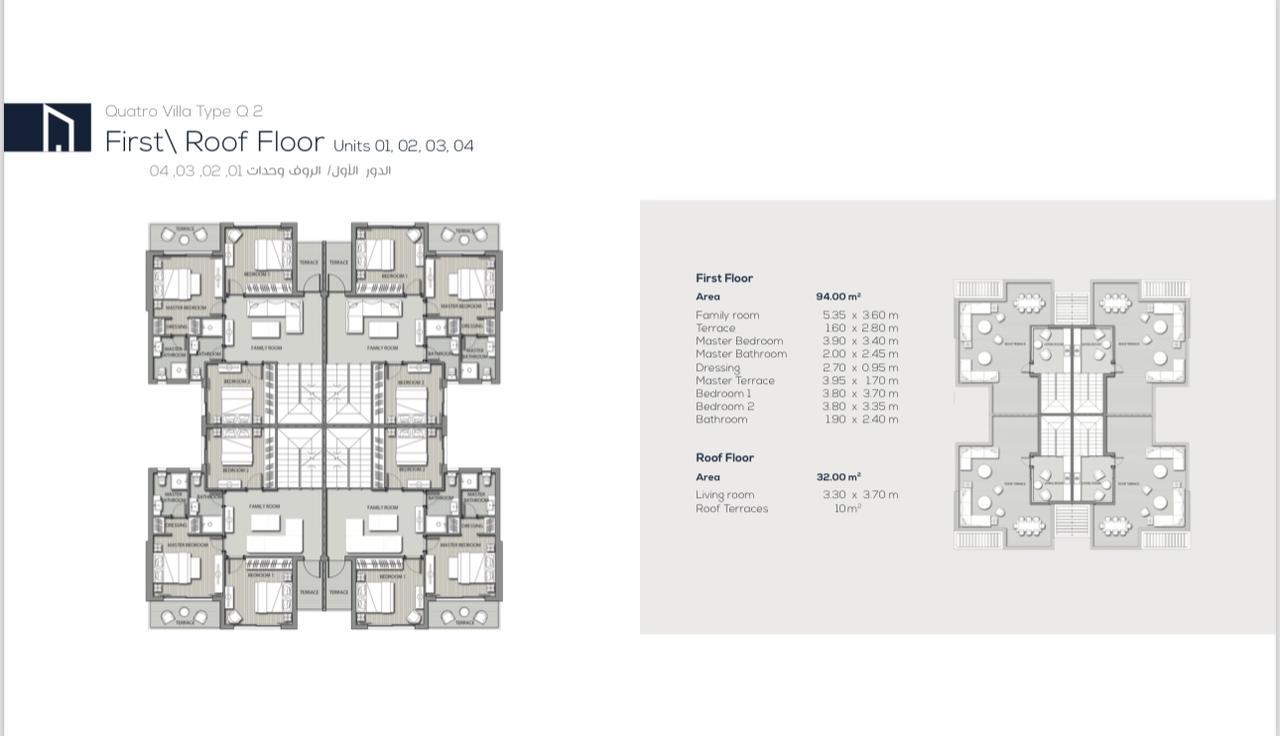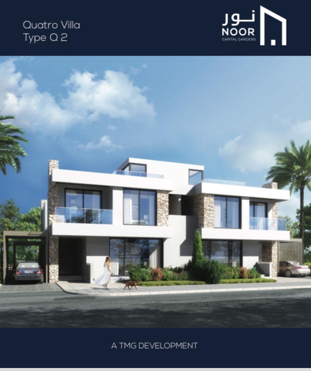 فيلا رباعية في نور بالمرحلة الرابعة النموذج ( Q1 ) المساحة 234 متر2 مساحة المباني 195 متر2 تطل على تشمل 3 نوم 3 حمام 2 بلكونة بدون تشطيب للبيع تقسيط على 12 سنة بمقدم 2,862,560 جنيه