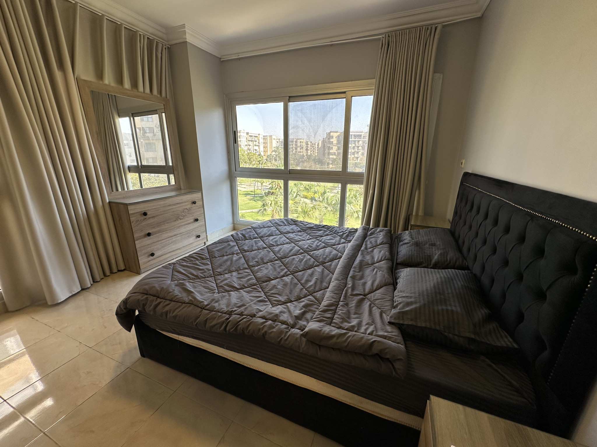 شقة في مدينتي بالمرحلة الثامنة النموذج ( 320 ) المساحة 150 متر2 قبلي تطل على حديقة كبيرة تشمل 3 نوم 2 حمام 1 بلكونة بالطابق الثالث تشطيب خاص إستلام فوري للبيع كاش 9,500,000 جنيه و الشقه طلعت مصطفي والبيع بالمطبخ بدون اجهزه والتكييفات ومعاها جراج خاص للوحده